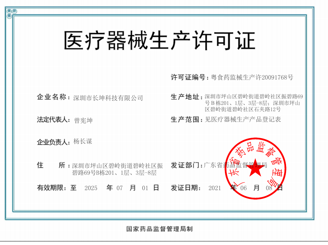 歡迎來(lái)到深圳市長(zhǎng)坤科技有限公司官網(wǎng)!      粵深食藥監(jiān)械經(jīng)營(yíng)備20151166號(hào)      粵食藥監(jiān)械生產(chǎn)許20091768號(hào)